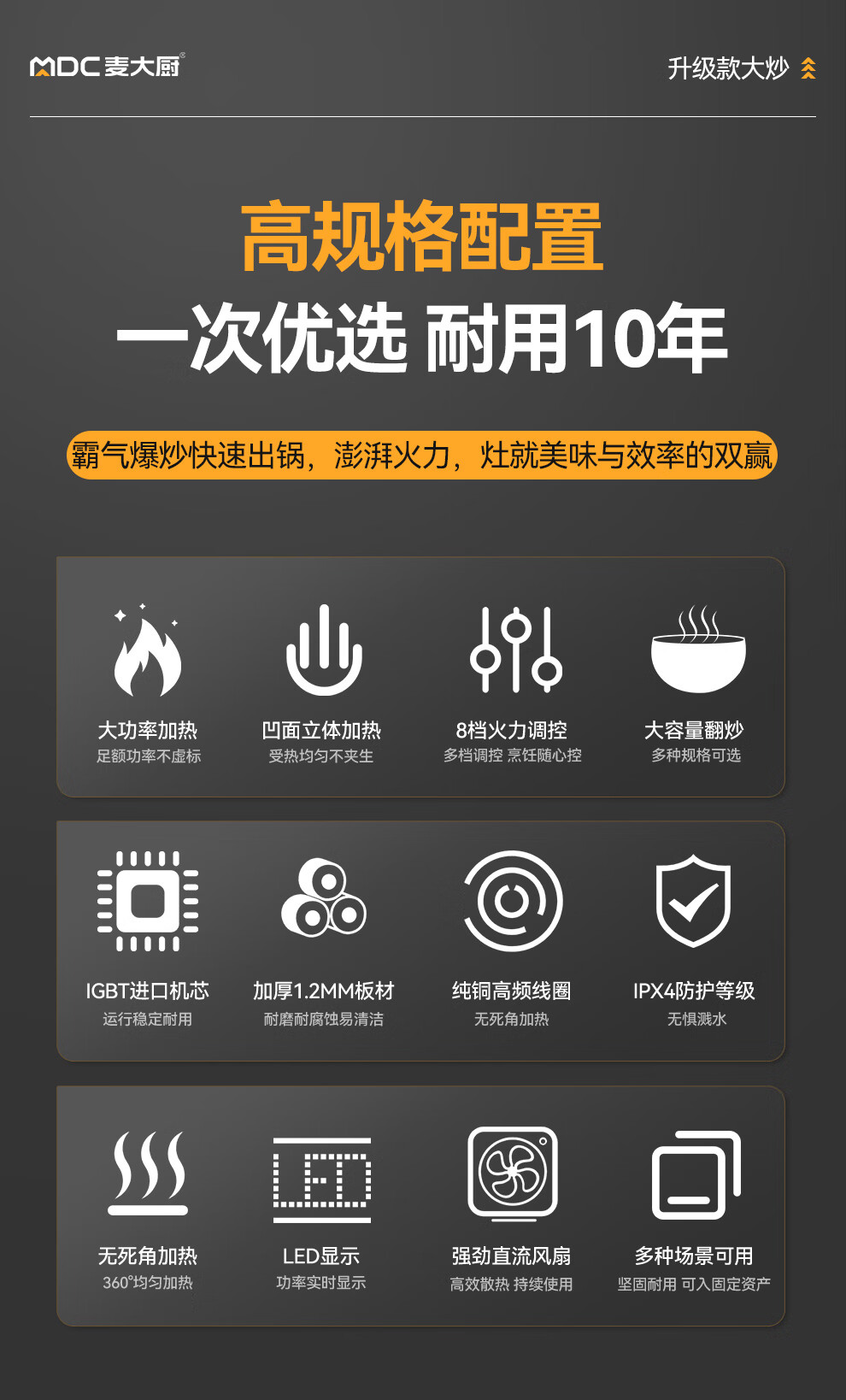 麥大廚大功率大炒鍋電灶臺升級款30KW單頭學(xué)校食堂百人大炒爐
