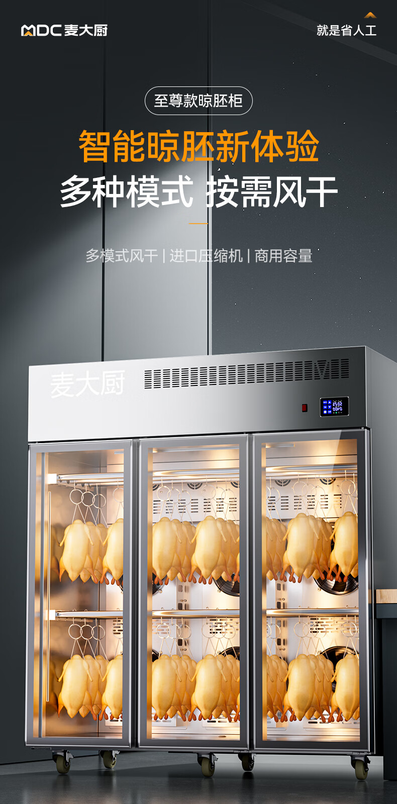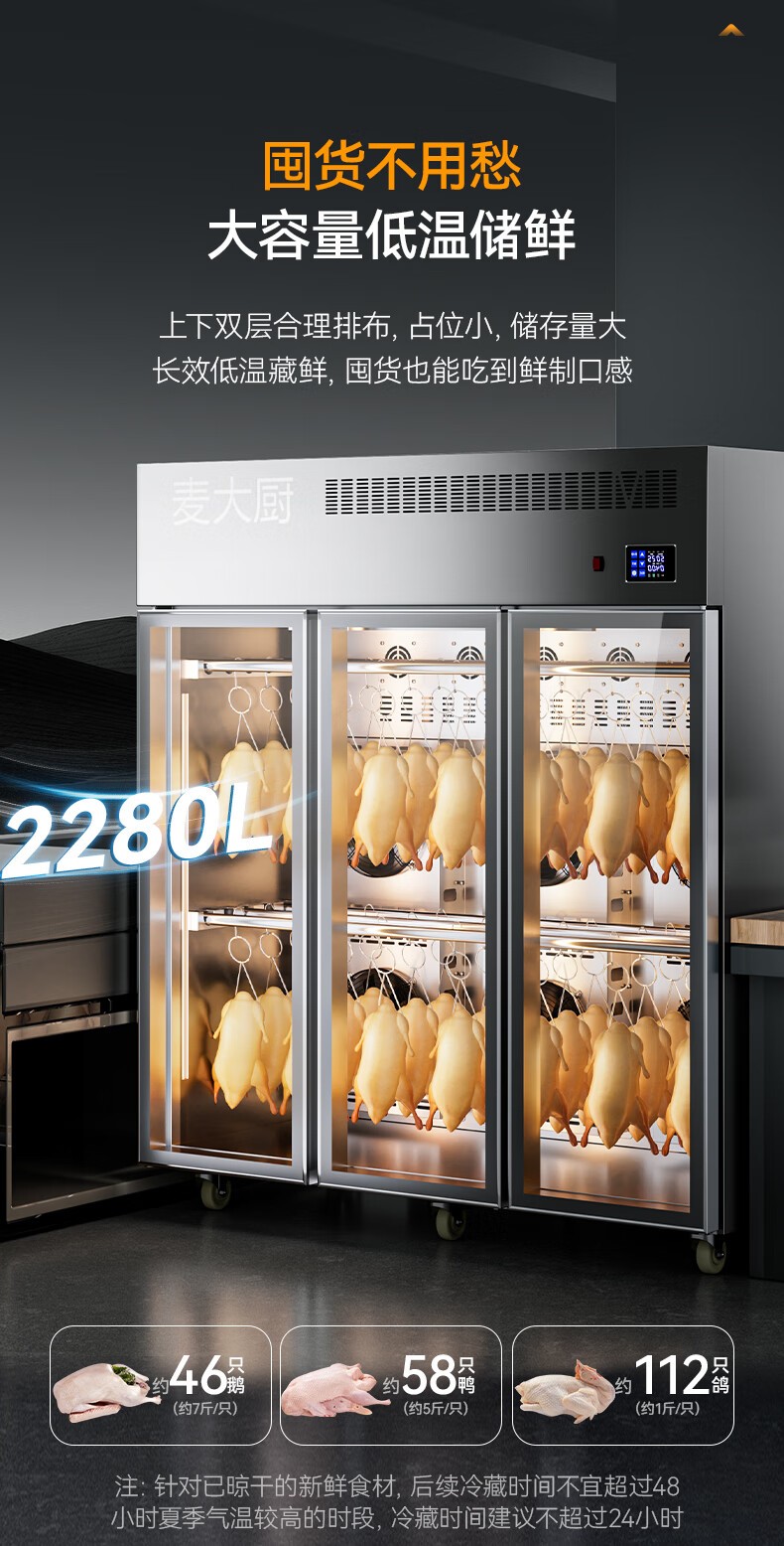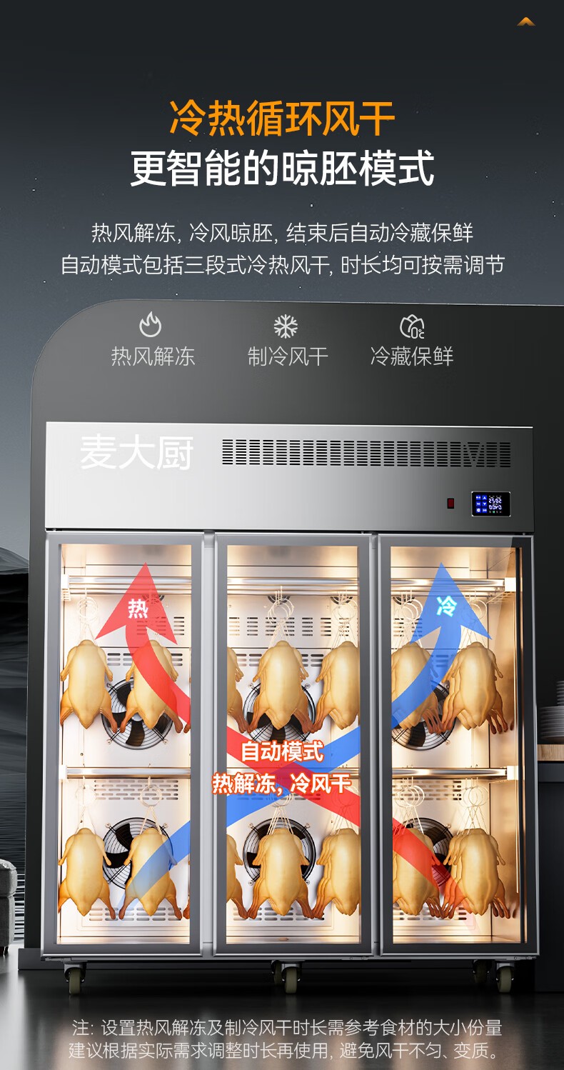 麥大廚商用晾胚柜節能至尊款2280W三門烤鴨風干柜