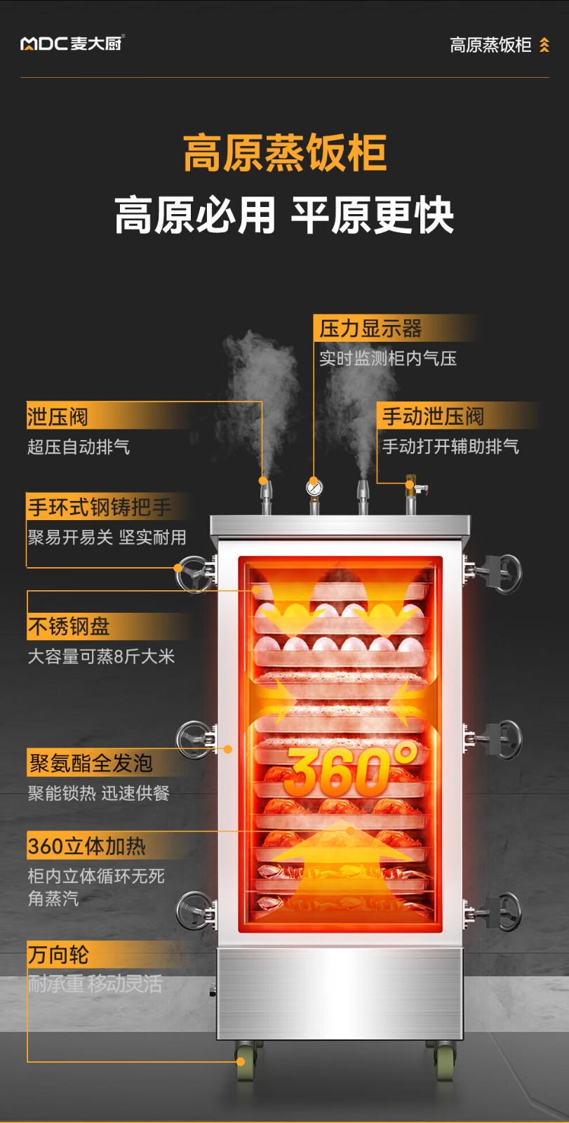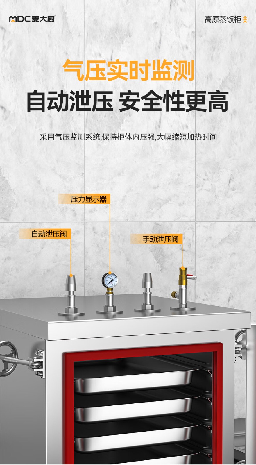 MDC商用高原蒸柜燃氣款48盤雙門蒸飯柜