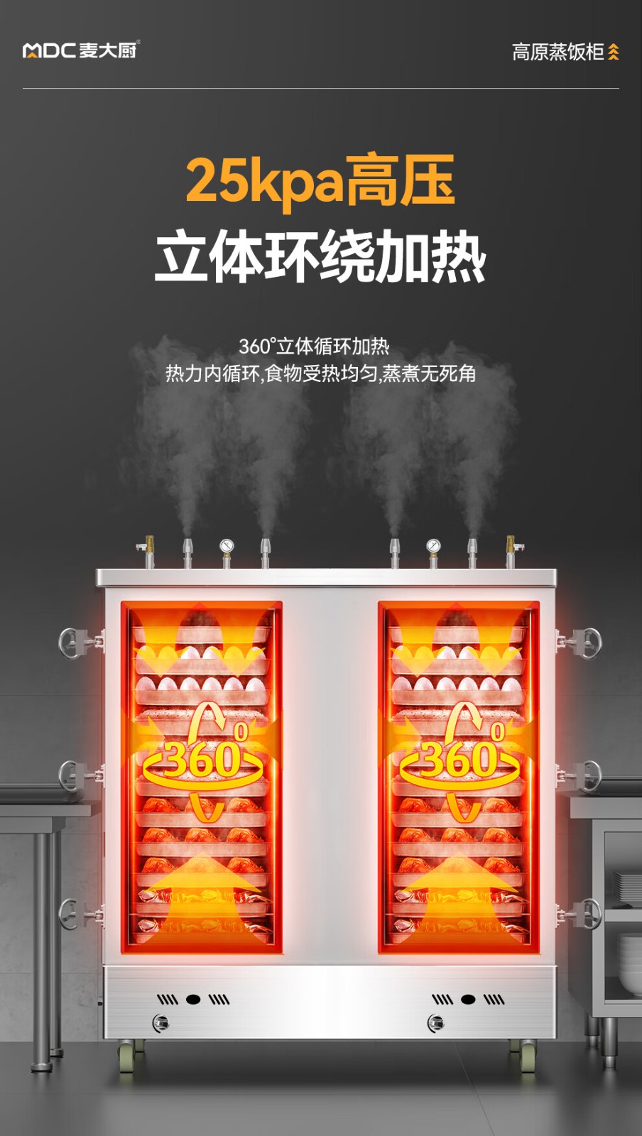MDC商用高原蒸柜燃氣款40盤雙門蒸飯柜